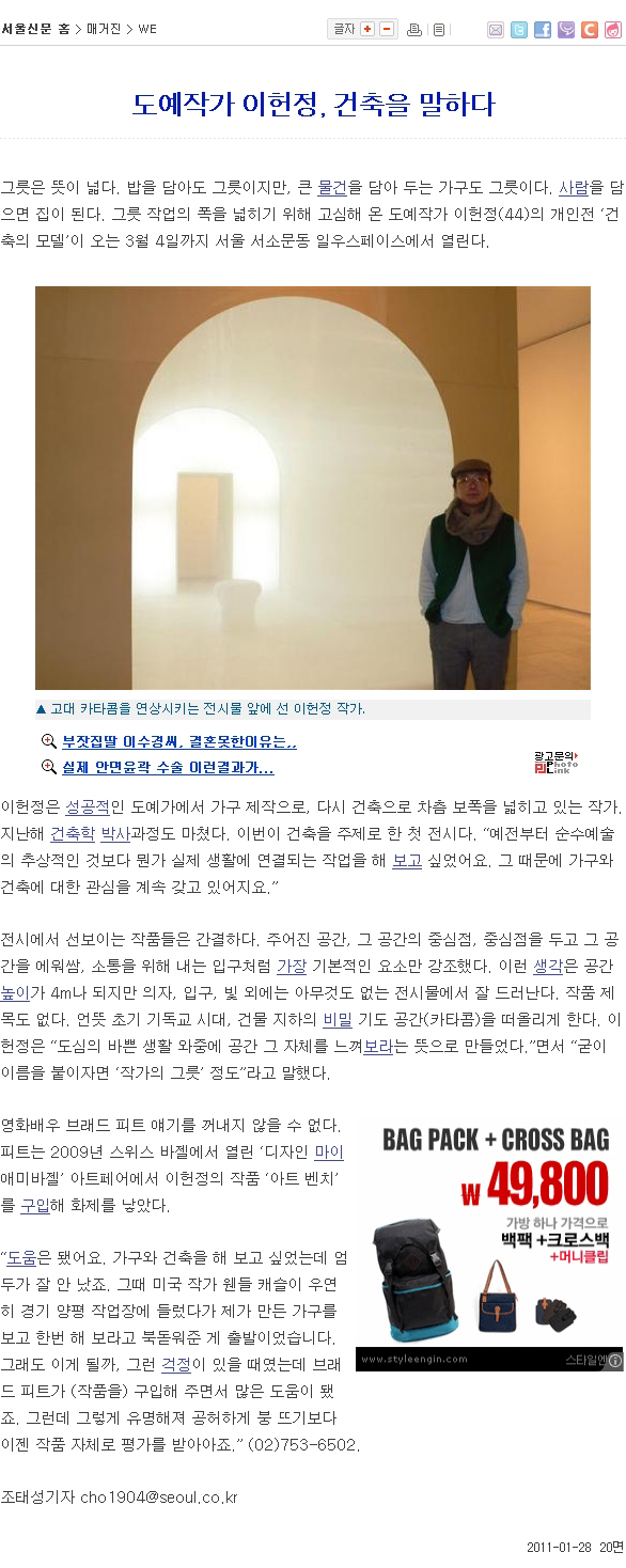 [¼¿ï½Å¹®] µµ¿¹ÀÛ°¡ ÀÌÇåÁ¤, °ÇÃàÀ» ¸»ÇÏ´Ù