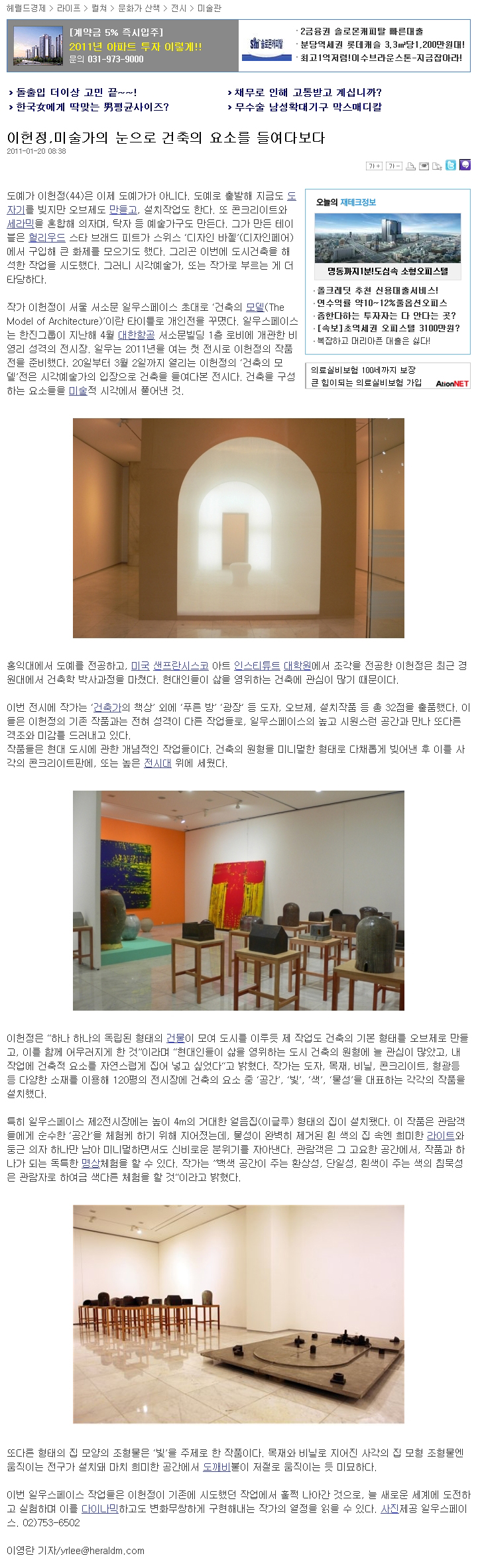 [Çì·²µå°æÁ¦] ÀÌÇåÁ¤, ¹Ì¼ú°¡ÀÇ ´«À¸·Î °ÇÃàÀÇ ¿ä¼Ò¸¦ µé¿©´Ùº¸´Ù