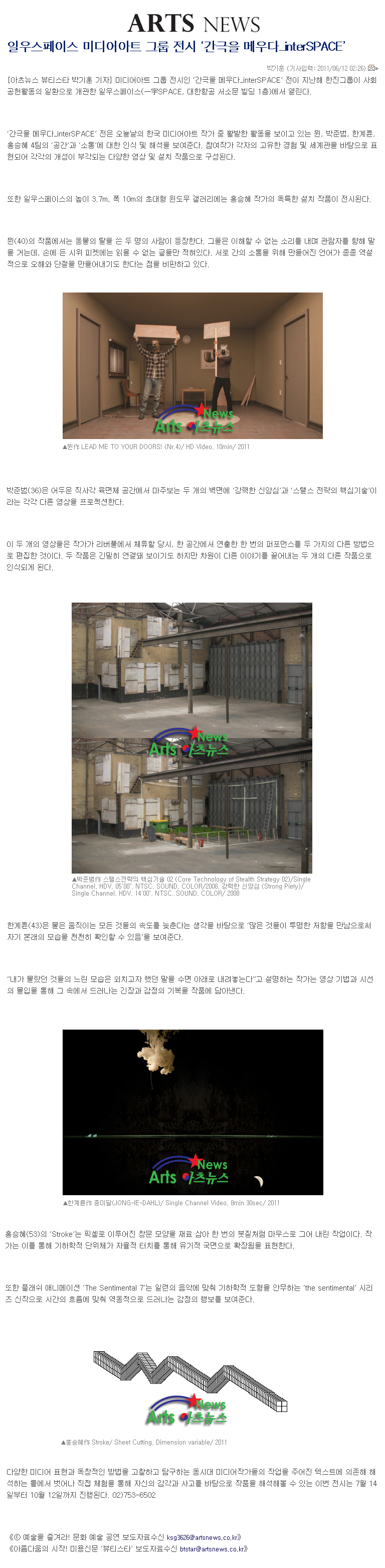 [¾ÆÃ÷´º½º] ÀϿ콺ÆäÀ̽º ¹Ìµð¾î¾ÆÆ® ±×·ì Àü½Ã '°£±ØÀ» ¸Þ¿ì´Ù_interSPACE'