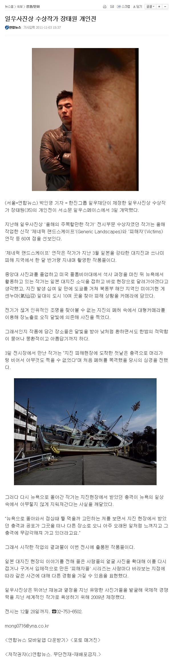 [¿¬ÇÕ´º½º] ÀÏ¿ì»çÁø»ó ¼ö»óÀÛ°¡ ÀåÅ¿ø °³ÀÎÀü