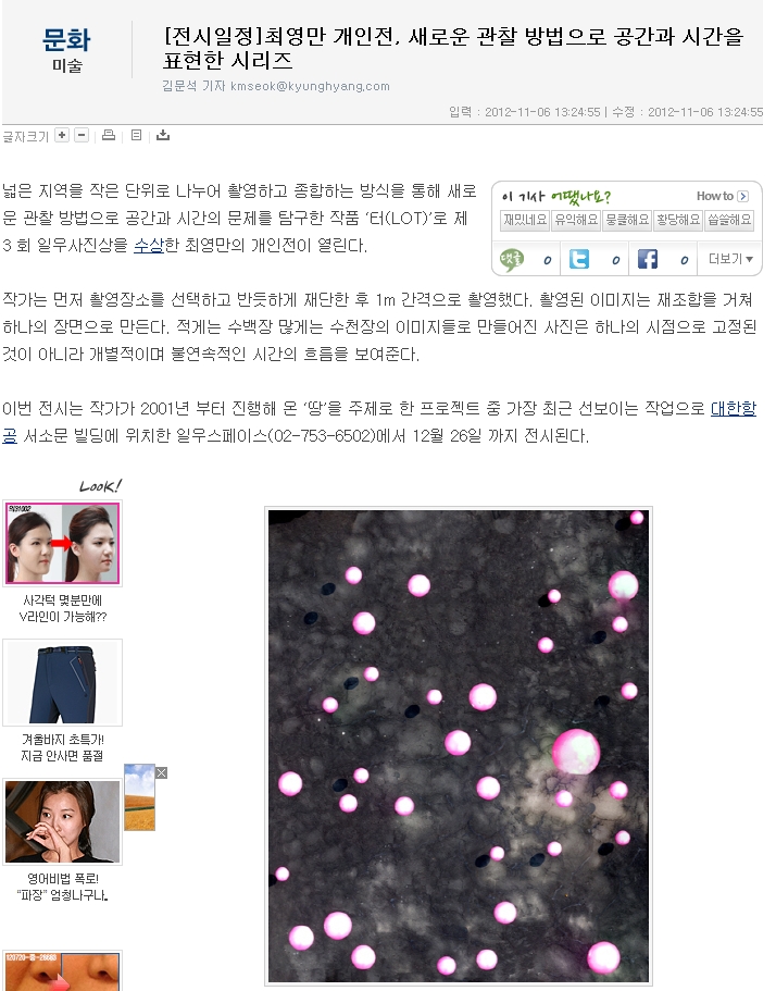 [°æÇâ½Å¹®]ÃÖ¿µ¸¸ °³ÀÎÀü, »õ·Î¿î °üÂû ¹æ¹ýÀ¸·Î °ø°£°ú ½Ã°£À» Ç¥ÇöÇÑ ½Ã¸®Áî