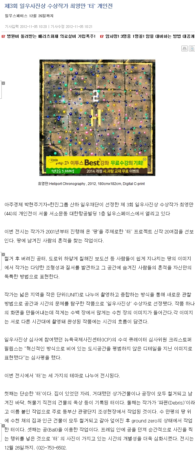[¾ÆÁÖ°æÁ¦]Á¦3ȸ ÀÏ¿ì»çÁø»ó ¼ö»óÀÛ°¡ ÃÖ¿µ¸¸ 'ÅÍ' °³ÀÎÀü