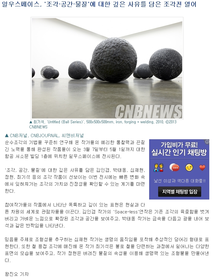 [CNBNEWS]ÀϿ콺ÆäÀ̽º,'Á¶°¢.°ø°£.¹°Áú'¿¡ ´ëÇÑ ±íÀº »çÀ¯¸¦ ´ãÀº Á¶°¢Àü ¿¾î